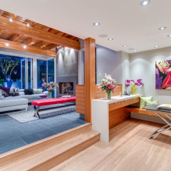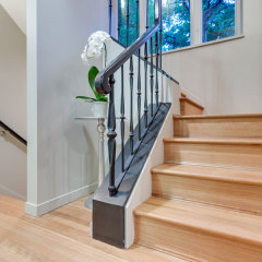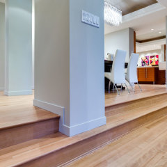 Installation of engineered, unfinished White Oak, rift and quartered finished with 3 coats of Heavy Duty, commercial finish Traffic by Bona (extra matte)