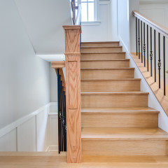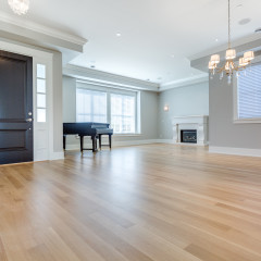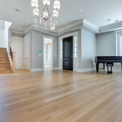 Installation of engineered, unfinished White Oak, rift and quartered finished with 3 coats of Heavy Duty, commercial finish Traffic by Bona (extra matte)