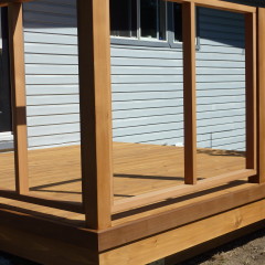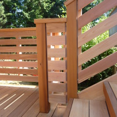 Design - build of this contemporary style cedar fence and deck to compliment the mid century modern design of the house. Fence is clear Western Red Cedar and deck is select tight knot.
