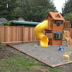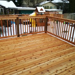 We also built the deck out of 1x4 knotty cedar decking with wood railing and new stairs.